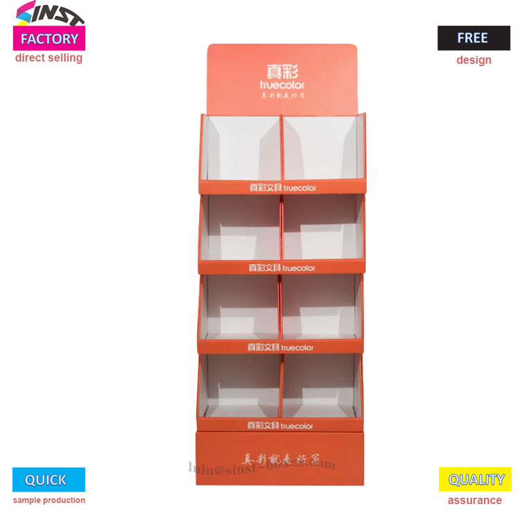 Detta livfulla orangeröda korrugerade pappersställ är en visuell attraktion och artefakt för varumärkeseffekt. Varje lager av sido- och bottenlådans kropp är upprepade gånger graverade med varumärkeslogotypen, vilket fördjupar kundens minne. Pappershanddukens korrugerade lådor är tillverkad av tjockt korrugerat pappersmaterial med starkt kompressionsmotstånd, och det är också mycket robust när du staplar flera föremål. Flerlagers staplade struktur med oberoende fack, perfekt lämplig för mjukpapper, pappersvaror och enkel åtkomst utan att fastna; Från den snabbrörliga konsumentvaruavdelningen i stormarknader till kassadisken i närbutiker, lockar den konsumenternas uppmärksamhet med färger med hög kontrast, uppgraderar "displaystället" till en "försäljningsförstärkare", vilket hjälper dig att enkelt öka produktexponeringen,