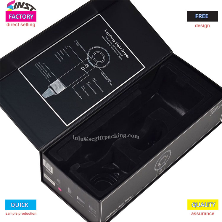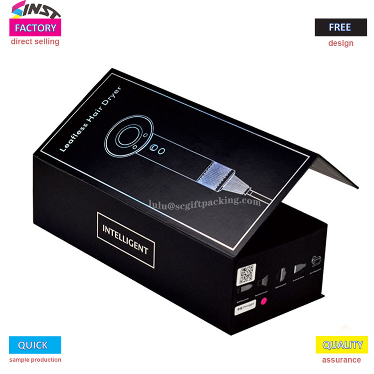 Denna Black Gold Flip Cover hårtork presentförpackning, med "Protection+Display+Ceremony" som kärnan, integrerar praktiska funktioner med avancerad konsistens. Det är inte bara den exklusiva "rustningen" i hårtork, utan också en värdig bärare för att förmedla känslor. Presentförpackningen har ett klassiskt svart färgschema, med en flip -stilstruktur som öppnas och stängs smidigt. Varje detalj är noggrant utformad och belyser varumärkets storhet.