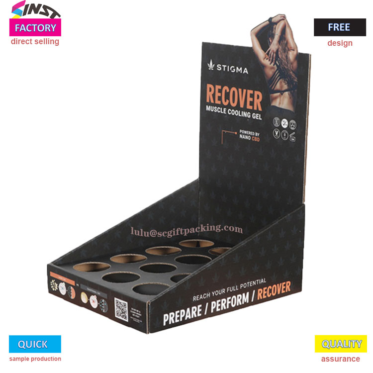 Detta Display -rack i hälsoprodukten är tema kring hälsa och förmedlar tydlig information om ingredienssäkerhet och effektivitet. Displaystället antar en designstruktur med tomma utrymmen, som bättre kan stabilisera produkterna; Huvudkroppen är gjord av 3 mm tjock miljövänlig kartong, täckt med en matt vattentät film på ytan, som är slitstöd, smutsbeständig och inte lätt skadad och skadas inte lätt under långvarig skärm. Alla tryckfärger har godkänt säkerhetstestning, utan lukt eller färgblekning, vilket säkerställer säkerhets- och miljöskydd, oavsett om de placeras i köpcentra, butiker eller utställningsplatser.