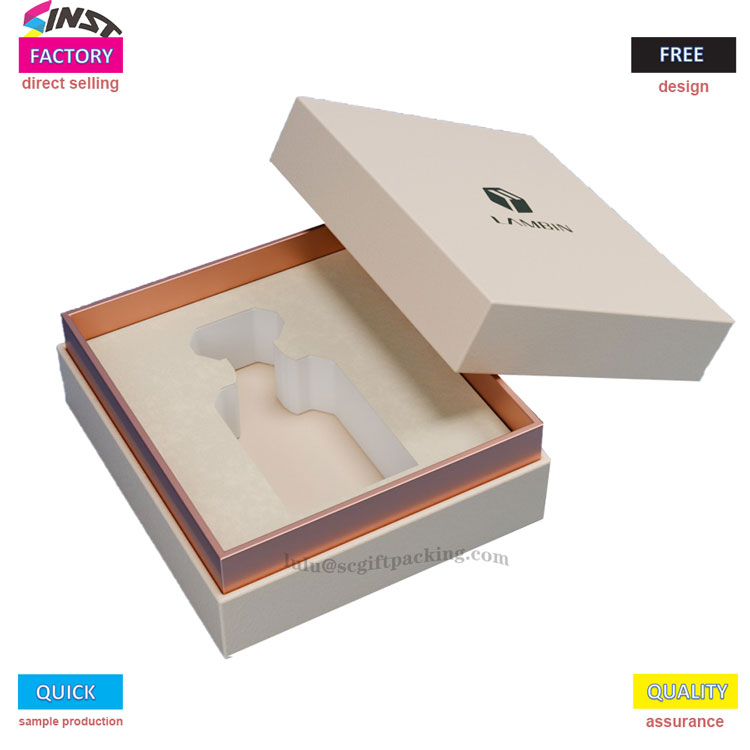 Vad bryr sig kunderna mest om parfympresentförpackningar? Det är inget annat än att "inte skrapa mitt barn" och gör din parfym mer avancerad. Denna presentförpackning är fodrad med White Eva Flannelette, som känns som en "molntäcke" för parfym. Naturligtvis kan du också lagra eterisk olja, ansiktskräm och andra föremål. Lägg glasflaskan i den eteriska oljepresenten i den, inte rädd för små repor på lådväggen; Metallskyddets hörn av ansiktskrämpartisen sitter fast på flanelletten, och färgen kommer inte att gnugga av när du öppnar och stängs. Rose Gold Special Cardboard på periferin är mer solid och lämnar inga märken när de är lätt repade med en nagel. När du lagrar tryckkänsliga föremål som cigarr presentförpackningar kan ramen hålla dem stadigt, mycket mer motståndskraftiga mot fallande än vanliga kartonger.