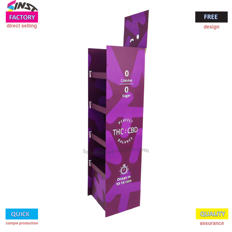 Vad är bra med det? För det första är färgen ljuslila med några lekfulla mönster, som kan placeras bredvid kassan eller hyllan och omedelbart fångar folks uppmärksamhet; Dessutom är den uppdelad i flera lager, som kan visa många småsaker och inte ta upp plats, vilket gör att fler kan se dessa småsaker i butiken; Dessutom är denna hylla gjord av kartong, vilket sparar kostnader och gör att små butiker kan köpa utan att oroa sig för pengar; Slutligen är detta tillverkat av en gammal fabrik som har tillverkat utställningsmontrar i 15 år. Du kan anpassa vilken stil du vill, och du kan snabbt göra den redo för brådskande beställningar eller provproduktion. Du behöver inga verktyg för att montera den, vilket är särskilt bekvämt.